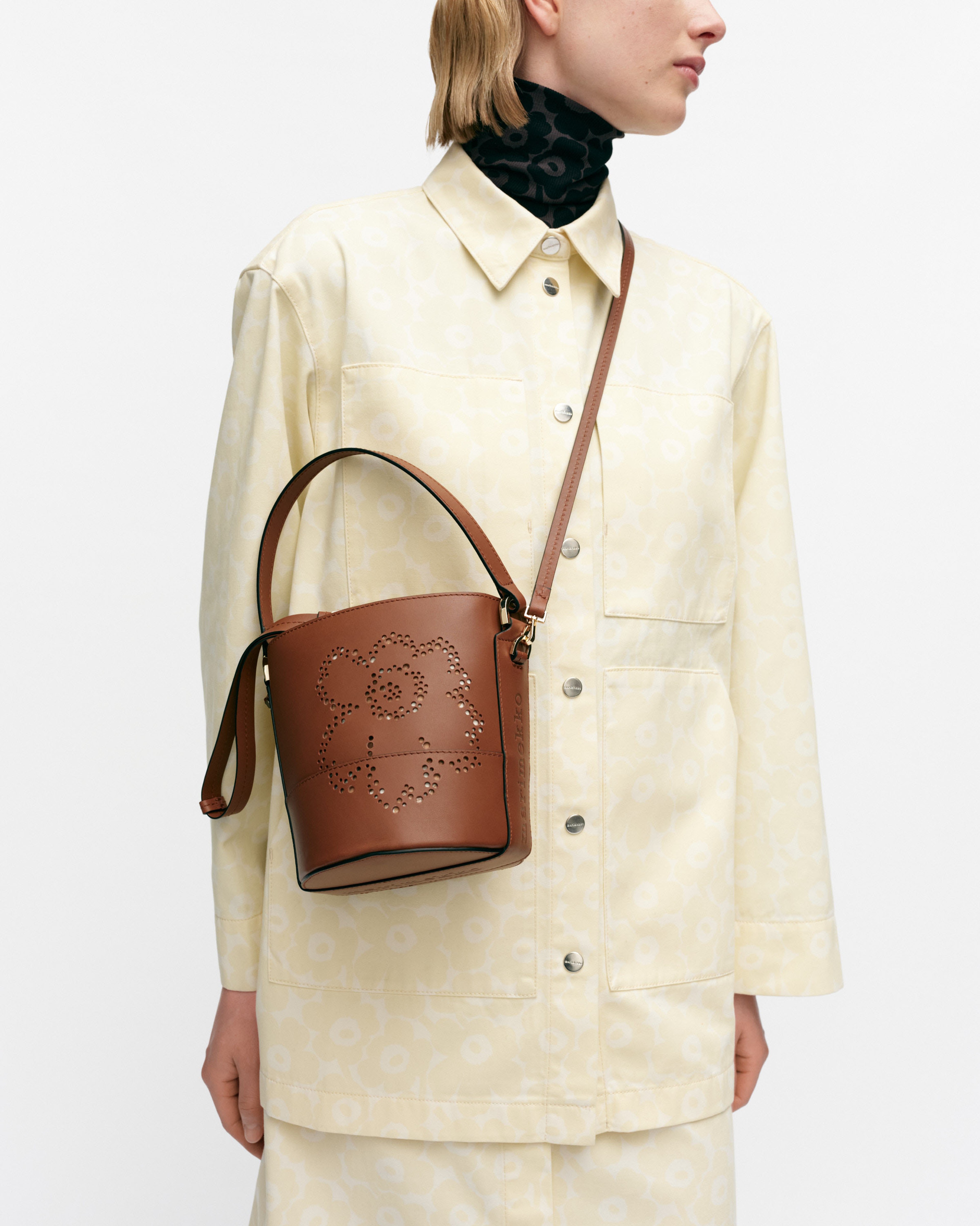 The Imprint series features a leather manufacturing milestone that we are especially proud of—traceability. At Marimekko, we only accept leather from animals bred for food production, and each piece of leather used in Imprint bags can be traced back to a specific Scandinavian farm.