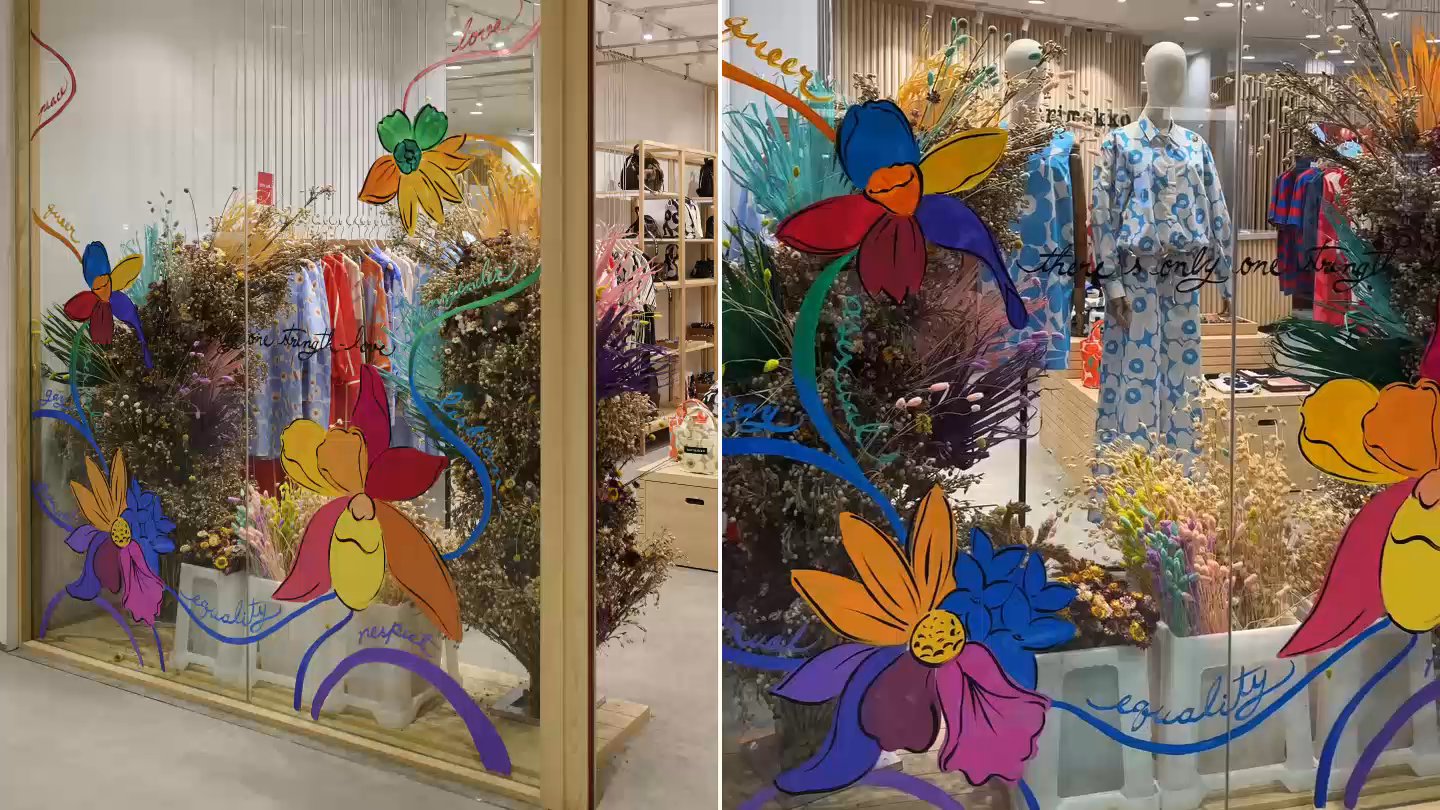 Sophian toteuttama Pride-kuukauden teos on esillä Marimekon New Yorkin -myymälään osoitteessa 97 Wooster Street.