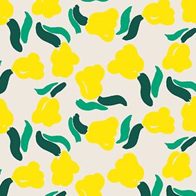 Erja Hirvi’s lively floral motif Lemmitty draws inspiration from freehand sketching. Sometimes, the most delightful results come from intuition rather than careful planning. The Finnish name of the pattern translates to “sweetheart”.