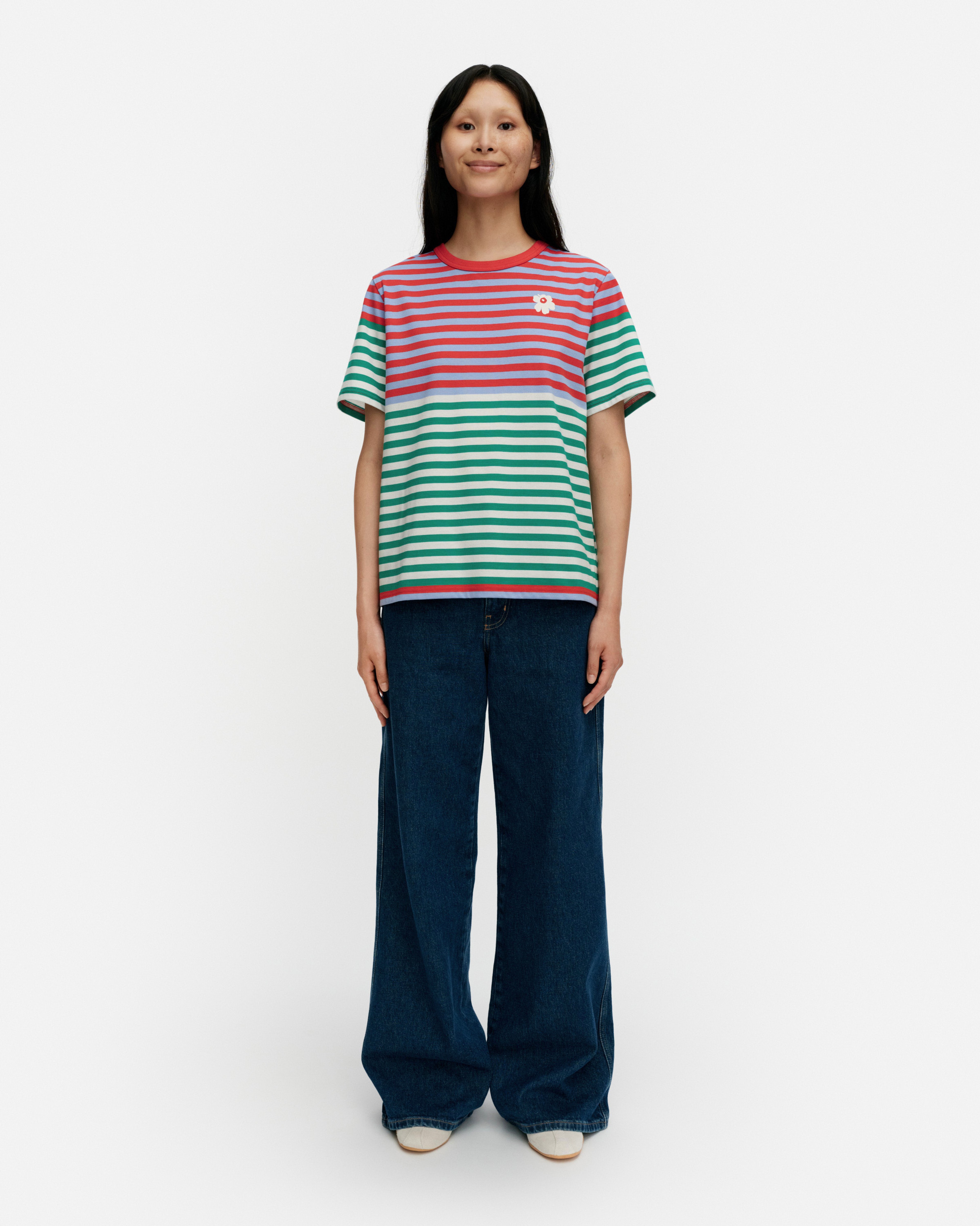 Marimekko’s vibrant and colorful patterns, bursting with summer fun, are available for women, kids, and babies alike. Enjoy Melooni (melon) and Ruukku (pot) by Maija Isola, Lirinä (sound of gurgling water) and Asema (station) by Pentti Rinta, Demeter by Katsuji Wakisaka, and Galleria (gallery) by Vuokko Eskolin-Nurmesniemi.